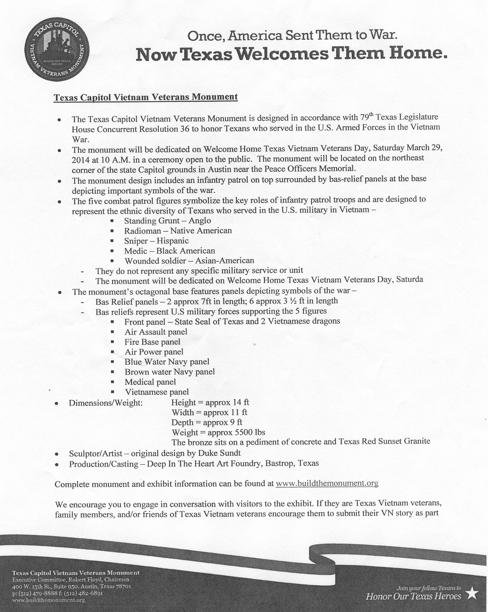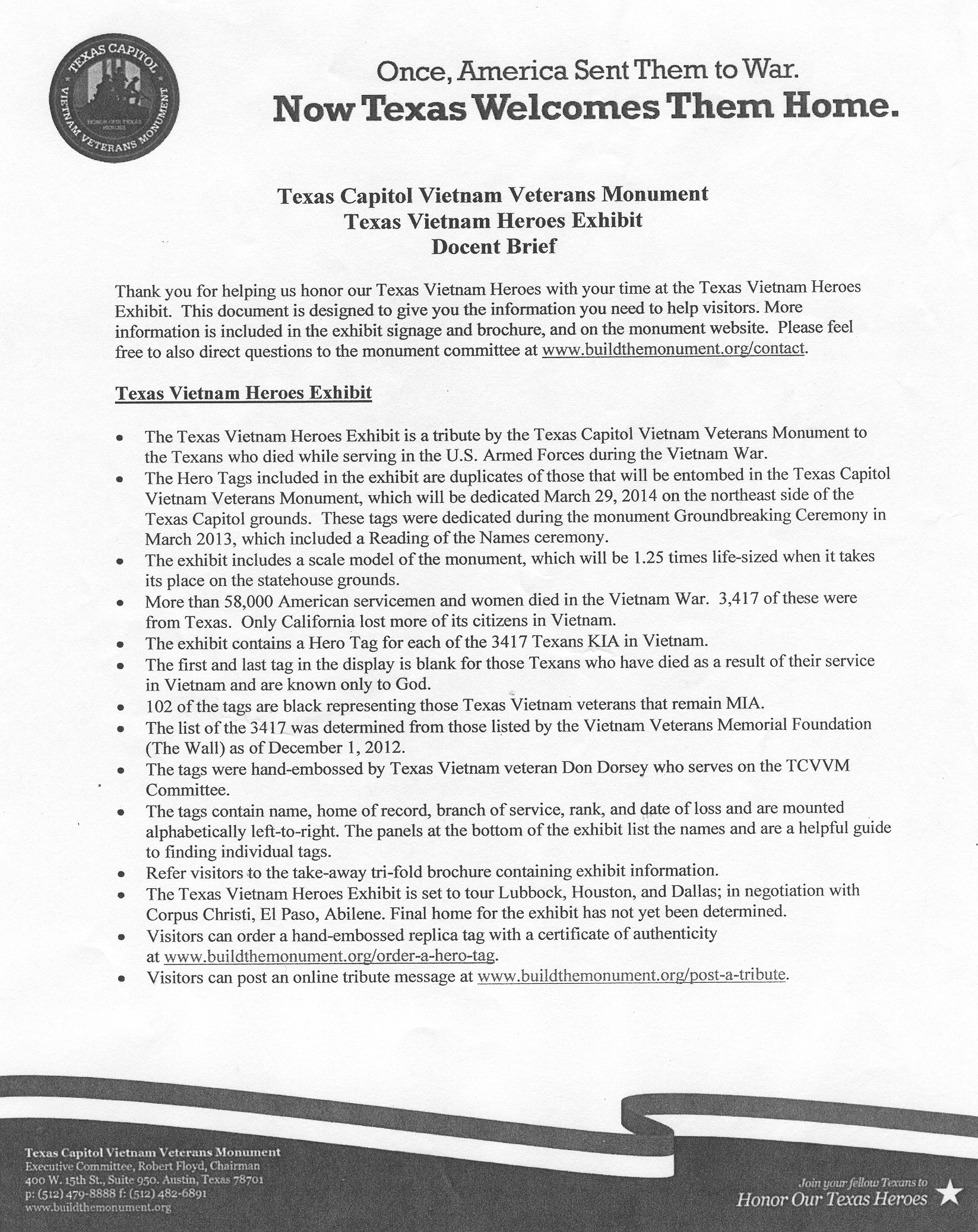 Click on the link below to view or print a document page that contains detailed information regarding the Texas Vietnam Heroes Exhibit.