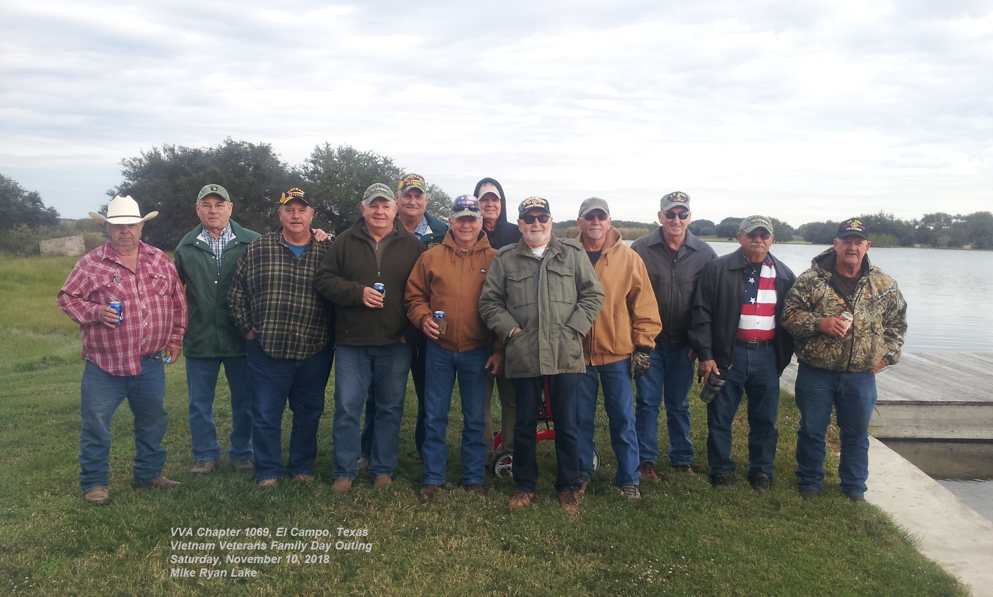 Many members, spouses & family members of the Vietnam Veterans of America, VVA Chapter 1069, of El Campo, Texas, attended a Vietnam Veterans Family Day outing at Ryan Lake, on Saturday, November 10, 2018.